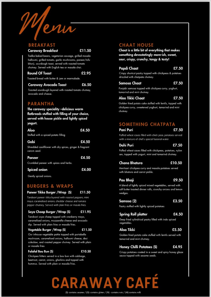 Welcome to Caraway Cafe, a hidden gem in Gerrards Cross, where a body of vegetarian delights waits to be discovered. The menu is a colorful celebration of tastes, featuring options like the Paneer Tikka Burger and Soya Chaap Wrap, each priced under £12. For something lighter, opt for a delightful Falafel Bou Bun.