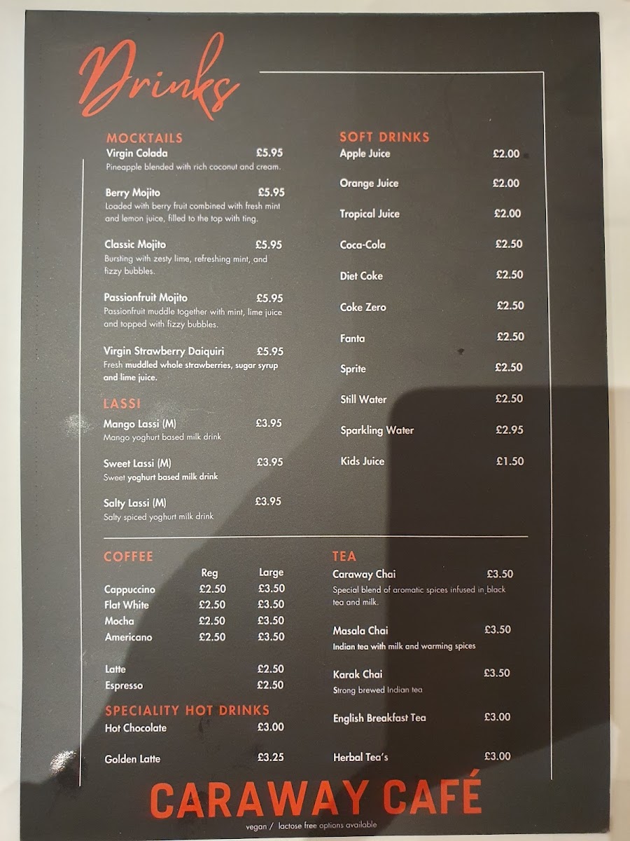 Refresh your palate with a selection of refreshing mocktails, including the tropical Virgin Colada and zesty Berry Mojito, each for just £5.95. To complement your meal, enjoy a rich Mango Lassi at £3.95.